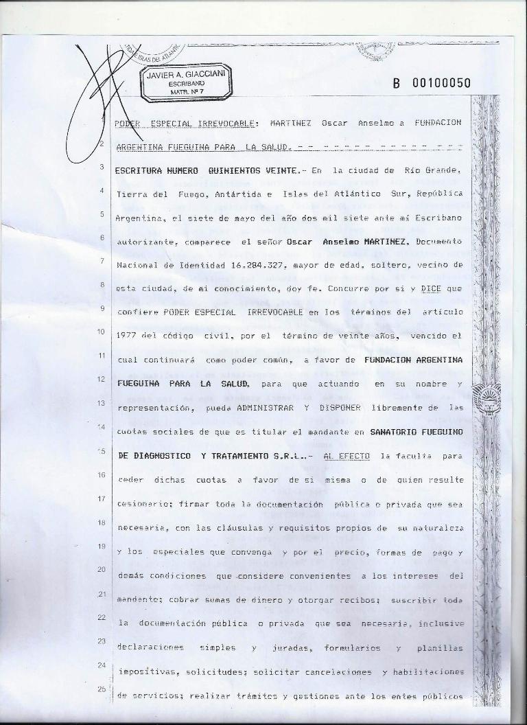 “Nosotros queremos aclararle a la comunidad fundamentalmente, porque nuestros compañeros esto lo saben, que cuando adquirimos las cuotas societarias de la clínica –al tratarse de una sociedad de responsabilidad limitada- se requerís de dos personas jurídicas. Una era la de la Fundación, que administramos desde la organización gremial producto del estado concursal de la obra social, y se votó en el Congreso de Delegados darme a mí la facultad de ser el socio gerente con un porcentaje de cuotas”.