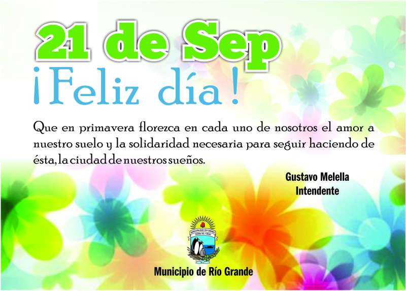 Sab 21/09/13 11:36 hs.-El intendente de Rio Grande, Gustavo Melella hizo llegar a través de una tarjeta el saludo por el dia de la primavera a todos los estudiantes y docentes de la ciudad. En la misma aboga para que Rio Grande siga siendo la ciudad de nuestros sueños.