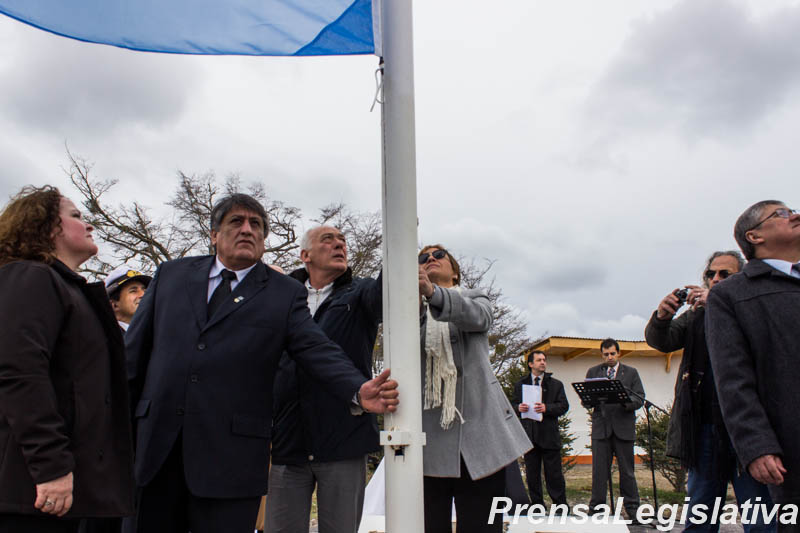La sesión se llevó a cabo en el gimnasio del colegio Ramón A. Trejo Noel y fueron la gobernadora María Fabiana Ríos; el intendente de Tolhuin, Claudio Queno y los presidentes de los bloques legislativos quienes izaron las enseñas nacional y provincial.