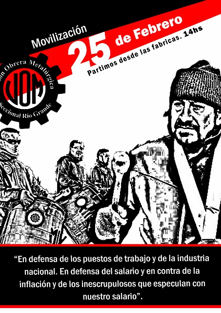 Río Grande –24/02/14 19:35 hs.- La UOM Seccional Río Grande convocó “a toda la comunidad a movilizarnos unidos éste martes, en defensa de la industria nacional que ha generado una gran cantidad de puestos de trabajo y para rechazar la suba indiscriminada de precios».
