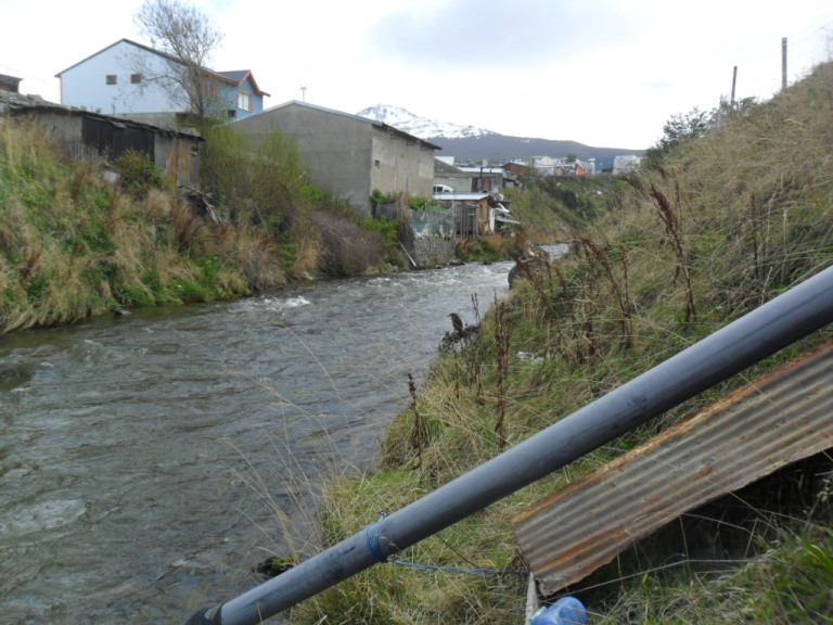 Se observó también un caño actualmente seco que, dada la apariencia organoléptica, parece haber descargado en algún momento algún tipo de hidrocarburo. Además se observaron varios desagües que podrían ser desagotes cloacales, pluviocloacales, residenciales o no que llegan al río desde ambas márgenes.
