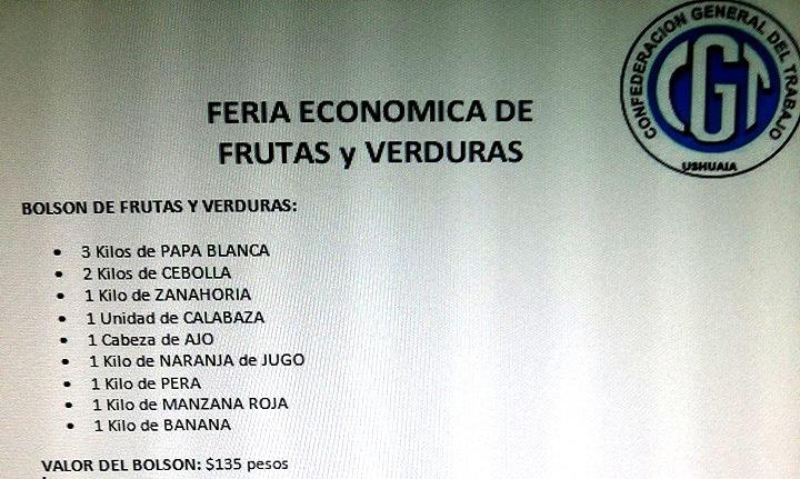 La CGT de Ushuaia organizó dos importantes ferias con precios económicos abiertas a toda la comunidad. La de frutas y verduras será el viernes 17 de octubre y la de carnes el sábado 18.