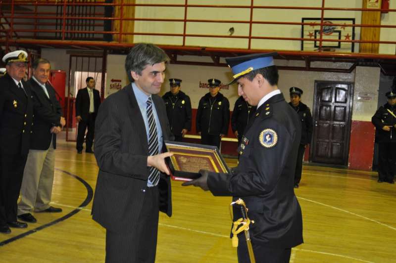 La ceremonia se llevó a cabo en el Polideportivo Municipal ‘Carlos Margalot’ de Chacra II y fue encabezada por el Jefe de la Subdelegación de la Policía Federal Argentina en Río Grande, Subcomisario Claudio Alejandro Bravo, quien fue acompañado por la Presidente del Concejo Deliberante Miriam Boyadjián, a cargo del Ejecutivo Municipal y el Secretario de Gobierno, contador Paulino Rossi.