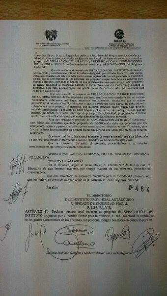 Ademas segun se puede leer textualmente en la resolución se hace referencia a armonizar la caja, una absoluta contradicción con los dichos de la senadora Bertone que había prometido a través de varios spot publicitarios que no tocaría la caja.