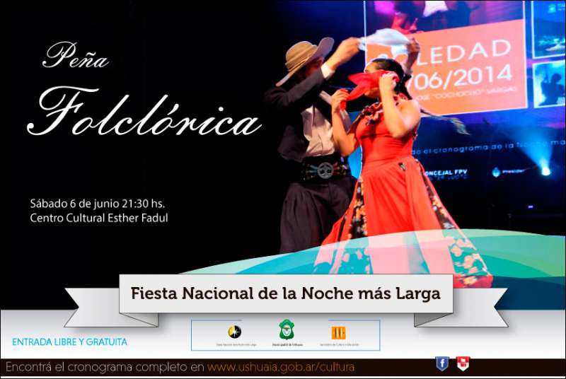 La Municipalidad de Ushuaia invita a la comunidad a participar de la “Peña Folclórica” que se realizará el sábado 6 de junio a las 21.30hs. en el Centro Cultural Esther Fadul.