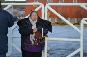 Por tal situación esta mujer que presta servicios de limpieza tomó la determinación de encadenarse a un portón que se encuentra en el acceso de las instalaciones provinciales de vialidad sitas en el ex campamento YPF.