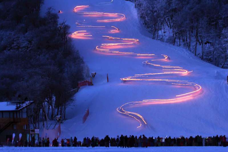Con un escenario natural único de montañas y nieve como nunca se vio, más de 80 instructores de Cerro Castor y del Club Andino bajaron por la pista Halcón Peregrino hasta la base, donde encendieron la llama que simboliza la unión de Tierra del Fuego, que dio inicio oficial de la temporada invernal 2015. El público disfrutó de una tarde con música en vivo y degustaciones del famoso chocolate caliente que brindo el Batallón de Infantería Marina. La fiesta del esquí culmino con un espectáculo único de fuegos artificiales.