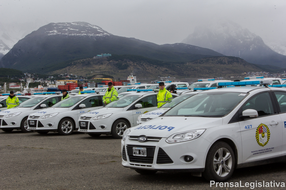 El acto, tuvo lugar en la Base Aeronaval Ushuaia Almirante Berisso y la entrega consistió en 40 patrulleros Ford Focus tipo sedan y de 30 camionetas Volkswagen Amarok tipo pick up. Los cuales, serán distribuidos en las dependencias operativas de las tres ciudades de la Provincia.