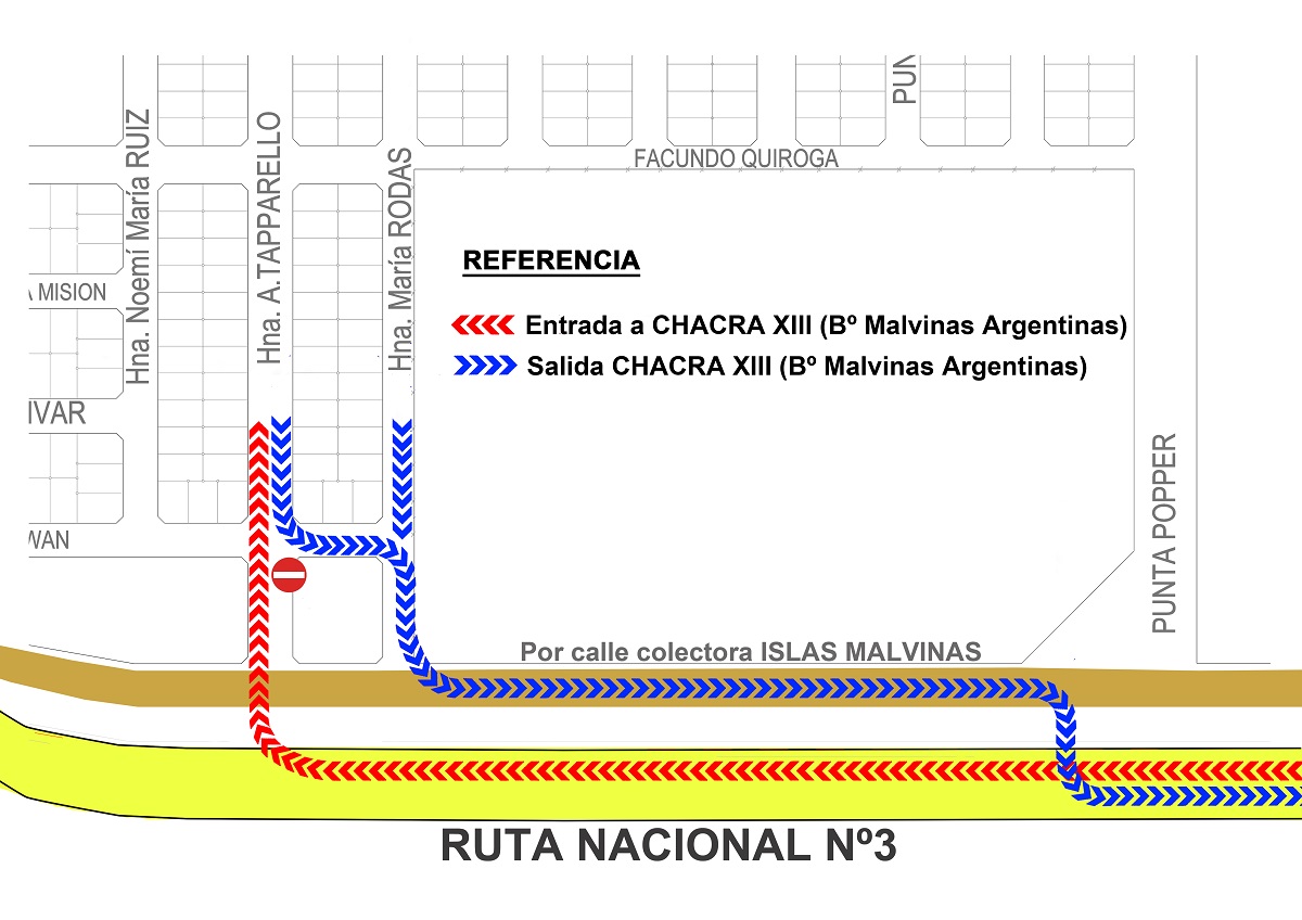 Agregó que “así, la entrada al barrio es a través de la calle Tapparello y la salida por Rodas y luego por la colectora de la Ruta Nacional Nº 3, hasta el semáforo de calle Popper y ahí los automovilistas van a poder ingresar a la ruta”.