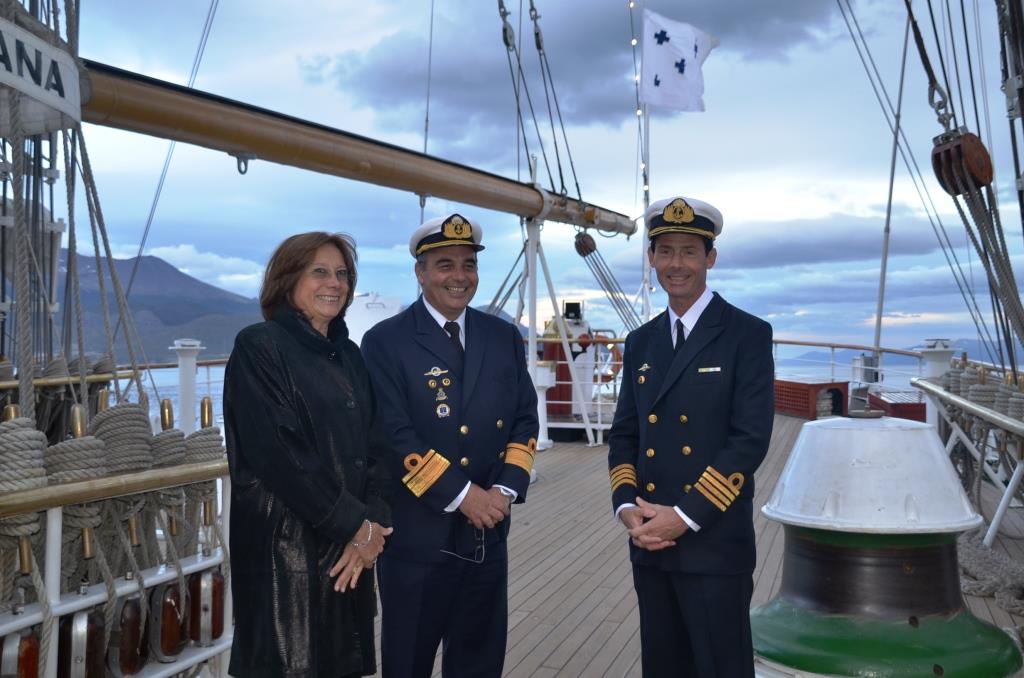 Fue recibida por el Comandante del Área Naval Austral, contralmirante Luis Enrique Mazzeo y por el Comandante del buque escuela de la Armada Argentina, capitán de navío Ignacio Martín Errecaborde.