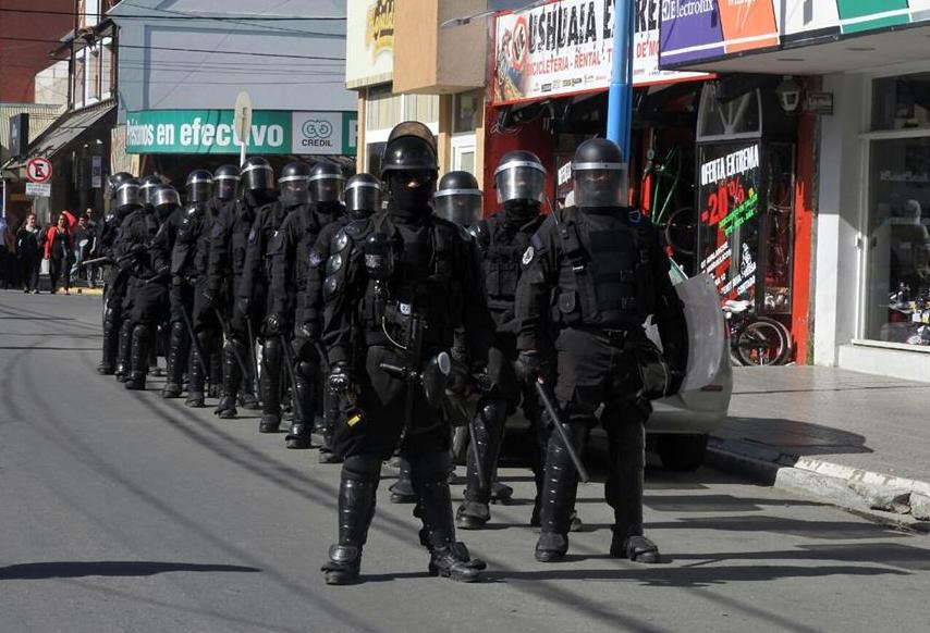 Mientras tanto, el gobierno de la provincia a puesto fuerzas policiales en todos los alrededores de la legislatura y después de 8 años volvieron a aparecer los grupos especiales, cascos, palos, escudos, solo falta la tanqueta de Manfredotti.