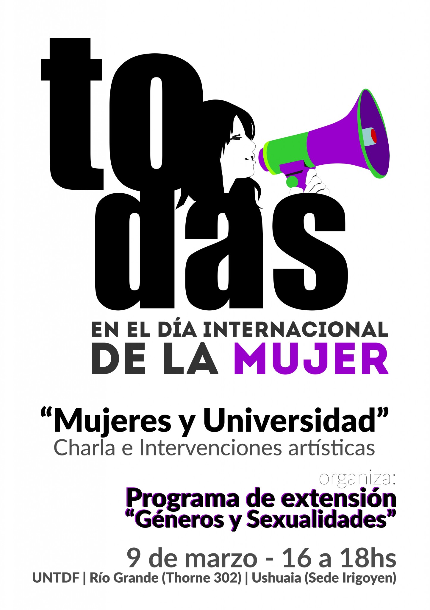 En el marco del Día Internacional de la Mujer que se conmemora cada 8 de marzo, la Universidad Nacional de Tierra del Fuego (UNTDF) a través de la Red Interuniversitaria por la Igualdad de Género y contra las violencias invita a la comunidad en general a participar de diversas actividades que se llevarán a cabo el próximo miércoles 9 de marzo de 16 a 18 horas en la sede universitaria de Río Grande ubicada en Thorne 302; y en simultáneo, en la sede de Ushuaia que se encuentra en Yrigoyen 879.