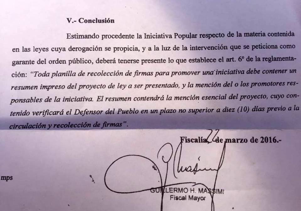 la norma estaba reglamentada, pero el Fiscal Mayor aprobó el proyecto y abrio la puerta a una nueva instancia en el conflicto que mantiene parada a toda la provincia desde hace 28 días.