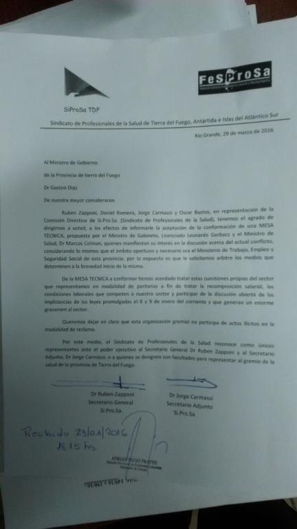 En el texto de la misiva los profesionales médicos aclararon además que la organización a la que pertenecen “no participa de actos ilícitos en la modalidad de reclamo”.
