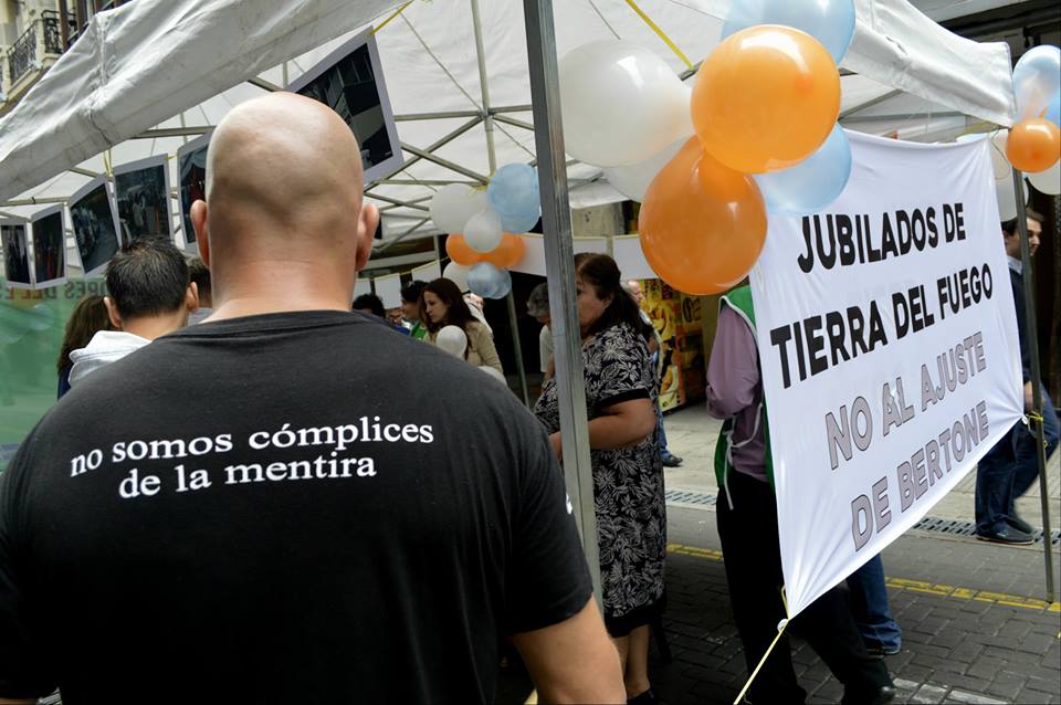 De la protesta participaron jubilados, estudiantes, pacientes derivados y empleados de Casa de Tierra del Fuego, Ipauss y del banco de la provincia.