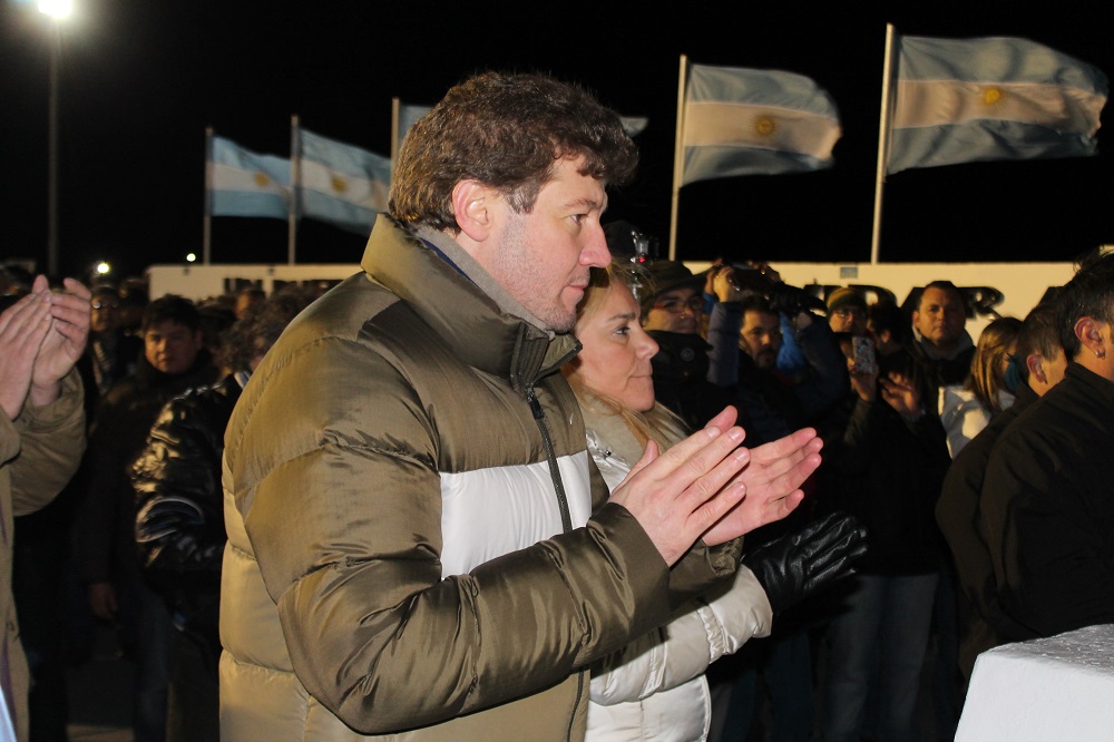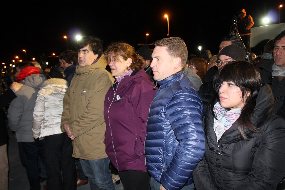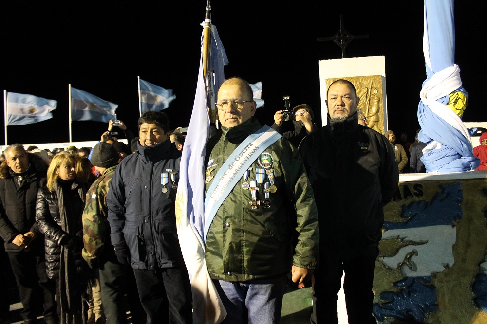 Sab 02/04/16 .- Se llevo a cabo anoche el acto en conmemoración de XXXIV aniversario de la Guerra de Malvinas y una verdadera multitud acompaño a los veteranos a pesar del intenso frío y el viento, Los ministros del gobierno nacional Rogelio Frigerio y Esteban Bulrich estuvieron presentes junto a la gobernadora Rosana Bertone y el Intendente Gustavo Melella y veteranos de distintos lugares del país.