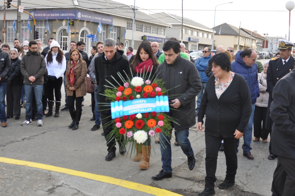 Al final del acto, el Cuerpo de Concejales junto al Presidente del Tribunal de Cuentas Carlos Iommi realizaron el depósito de ofrendas florales a las victimas de la tragedia del Lear Jeat.