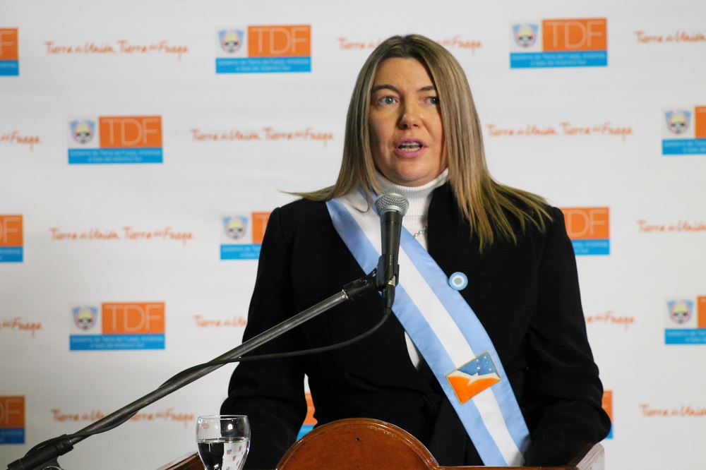 La gobernadora Rosana Bertone presidio este mediodía el acto central por el 25 de Mayo, el mismo se llevo a cabo en el Gimnasio del Colegio Don Bosco y asistieron funcionarios provinciales, el intendente de Rio Grande Gustavo Melella, senadores nacionales, legisladores provinciales, concejales, fuerzas de seguridad y publico en general.