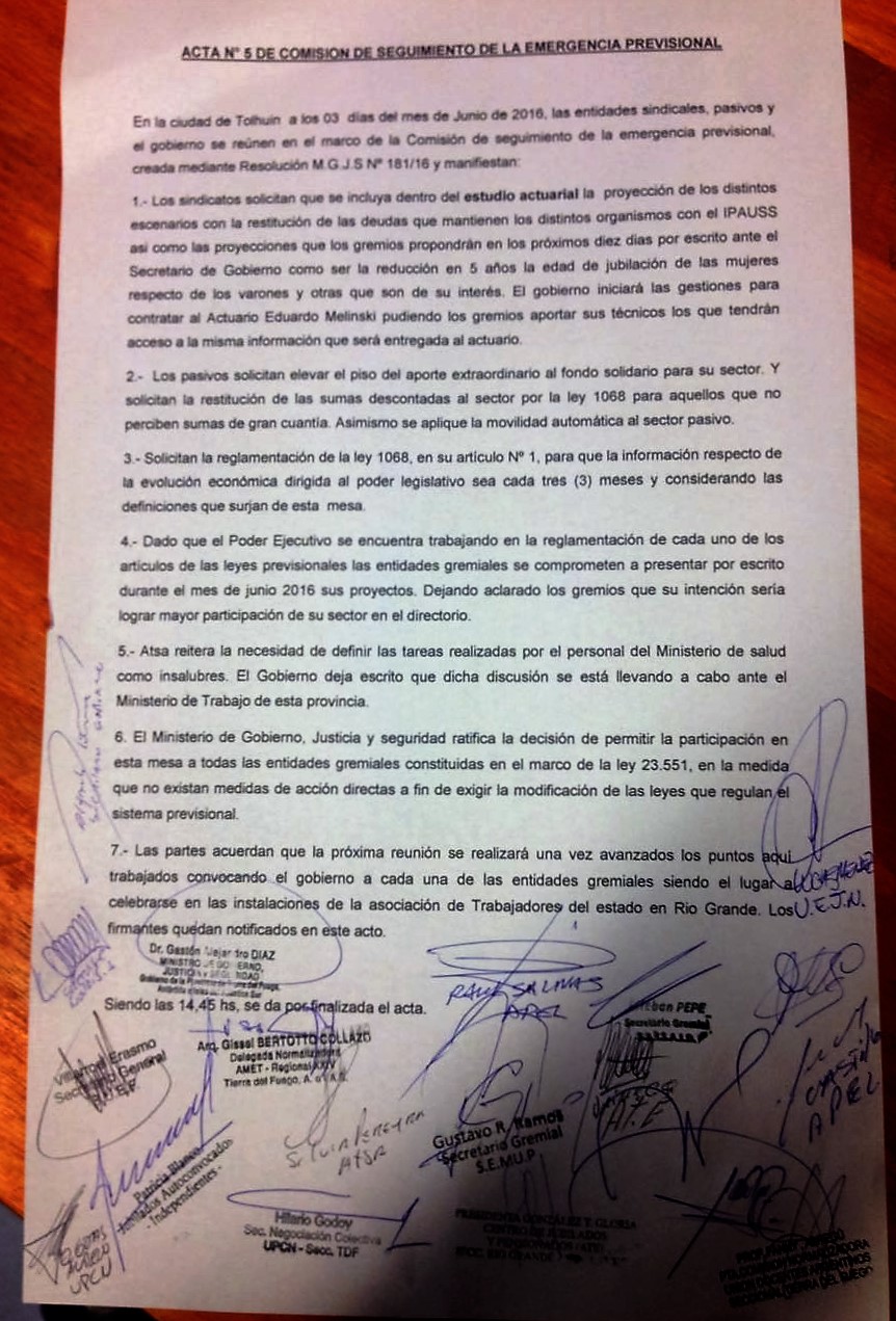 En la misma que se redacto en la reunión llevada a cabo hoy en Tolhuin con los sindicatos que forman la mesa técnica se solicita que se incluya a los organismos que mantienen deuda con el IPAUSS.