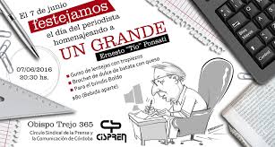 Dom 05/06/16 .- El Sindicato de Prensa de Río Grande (SIPREN) invita a toda la comunidad en general y a los periodistas en particular a participar del Acto por el Día del Periodista que se realizará este martes, 7 de junio, a las 11.00, en la Plaza José Luis Cabezas (Berta Weber y Cabo de Hornos).