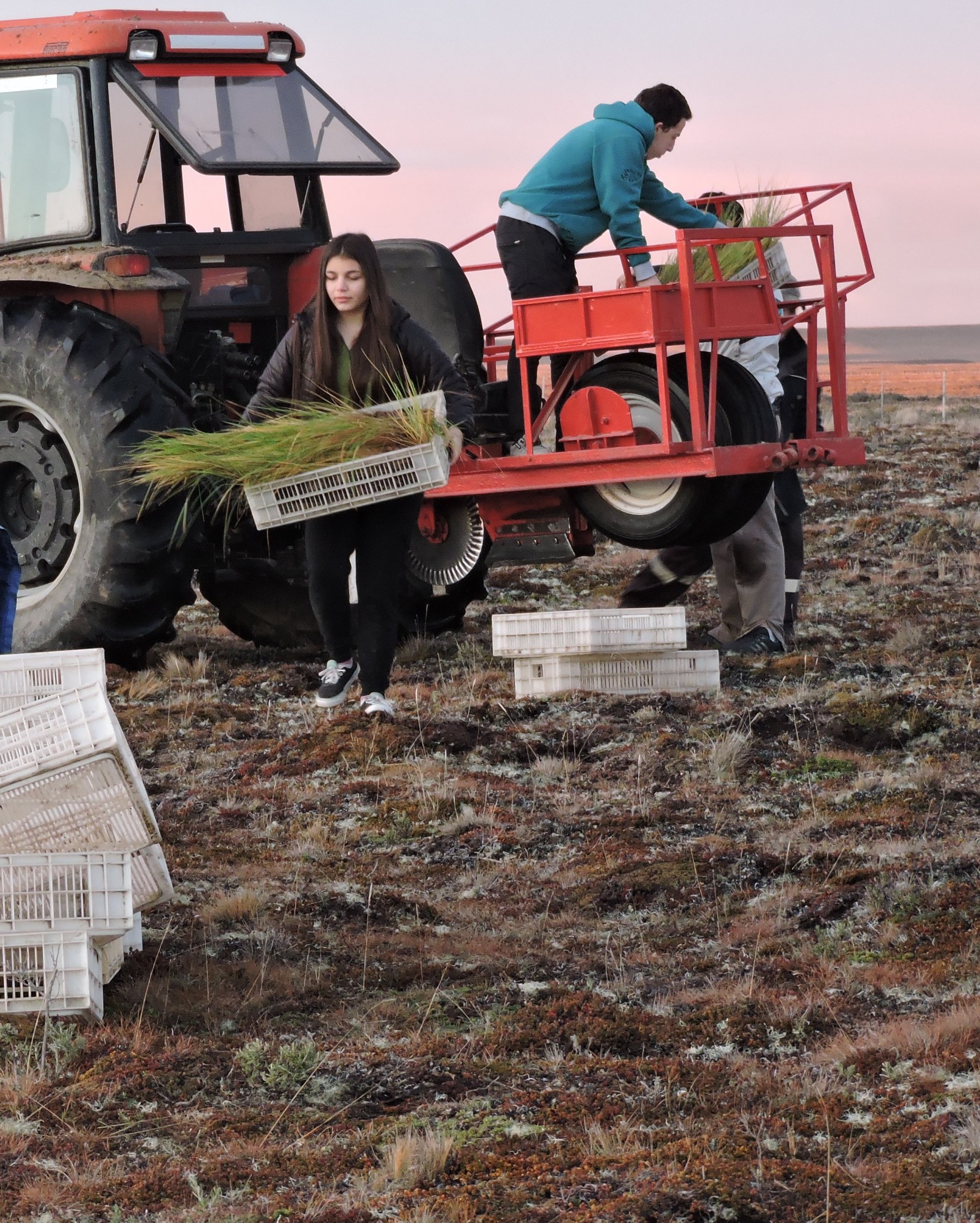 En el terreno donde se realiza el ensayo se encuentra el murtillar, un sitio degradado en el cual predominan subarbustos nativos que no son consumidos por los animales y, además, ahogan el resto de la vegetación. El Ing. Agr. Enrique Livraghi, de la AER Ushuaia, uno de los responsables de la actividad, explicó que “lo que se está haciendo es una prueba de revegetación con poa flabellata, una gramínea nativa del archipiélago austral”. “Los plantines que estamos implantando son producto de la recolección de semillas en la Isla de los Estados, además de un largo proceso de germinación y tratamiento hormonal”, agregó.