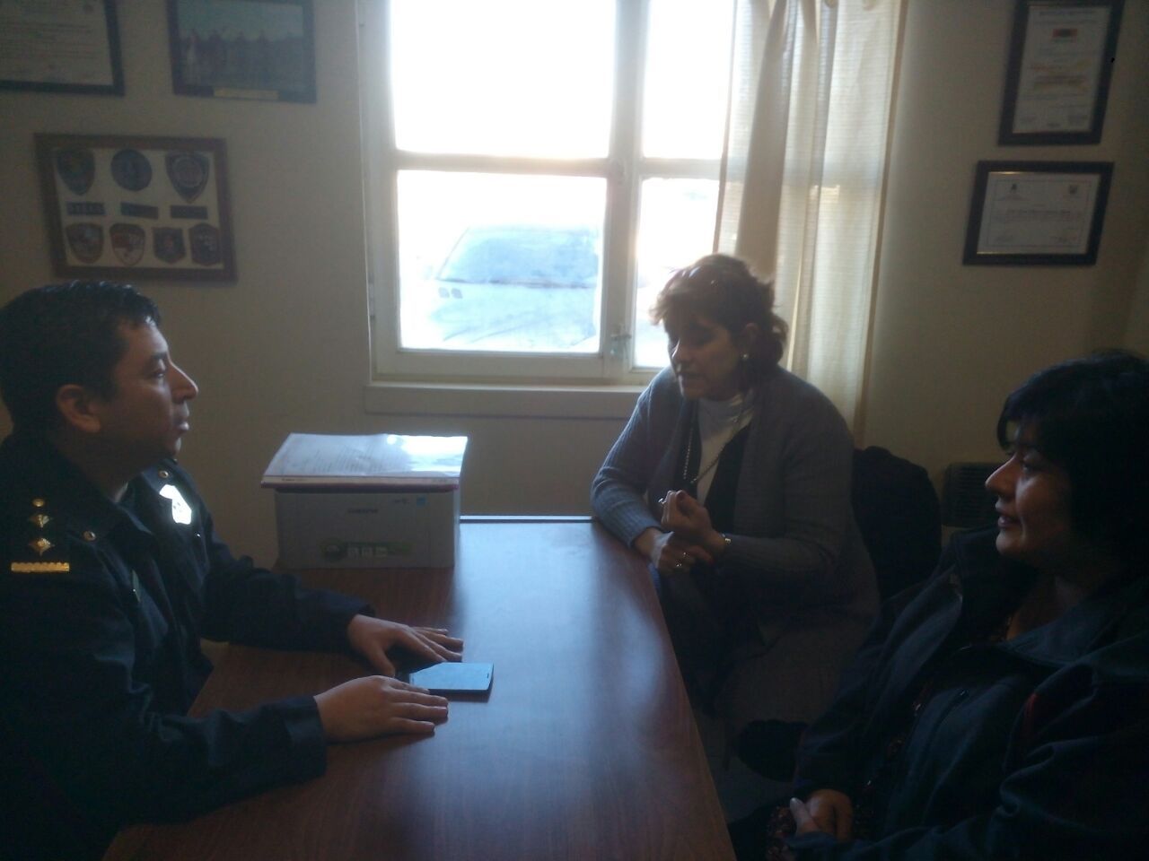 Río Grande.- Las concejales Verónica González y Miriam Mora mantuvieron una reunión con el comisario de la Comisaría Quinta del barrio Malvinas Argentinas en Chacra XIII Marcelo Guerrero a los efectos de interiorizarse con respecto de la implementación del proyecto de un sistema de un botón antipánico para implementar en la ciudad, donde la persona, al pulsar el botón, se le activa a la comisaría que tenga más cercana a su jurisdicción”. Esto es una aplicación App que se podrá utilizar, hasta el momento, con el sistema conocido como Android.