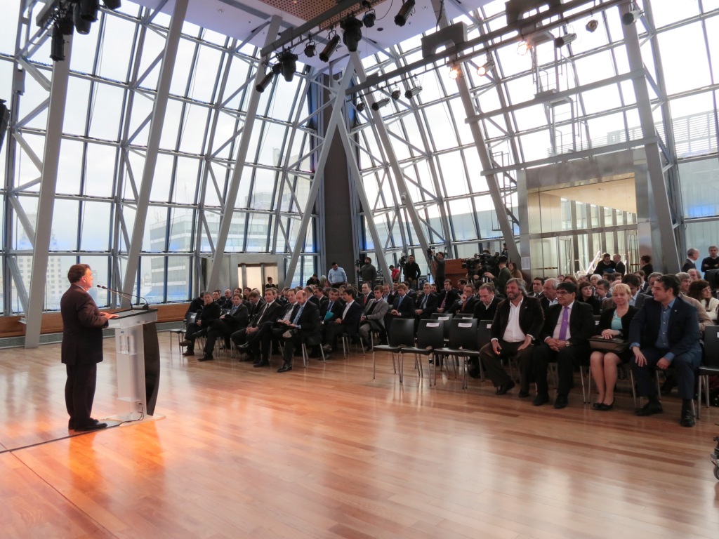 El acto tuvo lugar en el Centro Cultural Néstor Kirchner y también participaron el presidente de la empresa Newsan, Luis Galli, el legislador provincial Oscar Rubinos, y el referente del PRO en Tierra del Fuego, Héctor Stefani .