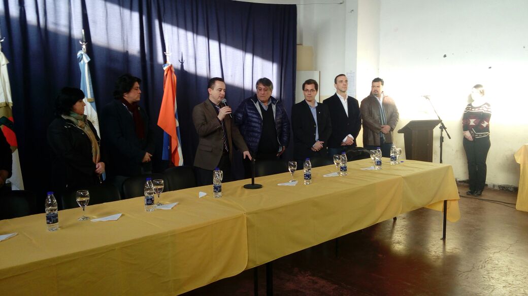 Lun 04/07/16 .-El ministro de Gobierno, Seguridad y Justicia, Gastón Diaz, y los secretarios de Relaciones Institucionales y Comunitarias, Patricio Lambert y de Gobierno, Alejandro Ledesma, participaron el viernes acompañando al intendente de Tolhuin, Claudio Queno, de la entrega de 43 viviendas del Plan Federal de Interés Socio Comunitario.