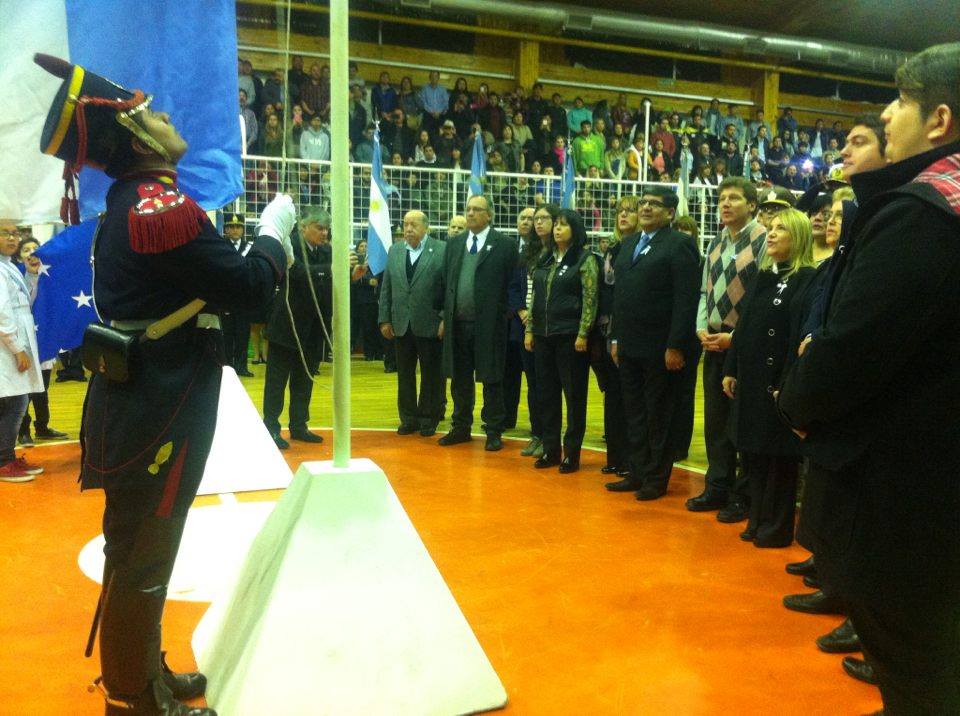 En los actos, los Granaderos fueron los encargados de ingresar el Pabellón patrio e izarlo junto a las autoridades, momentos que fueron recibidos con mucha emoción por parte de la población.