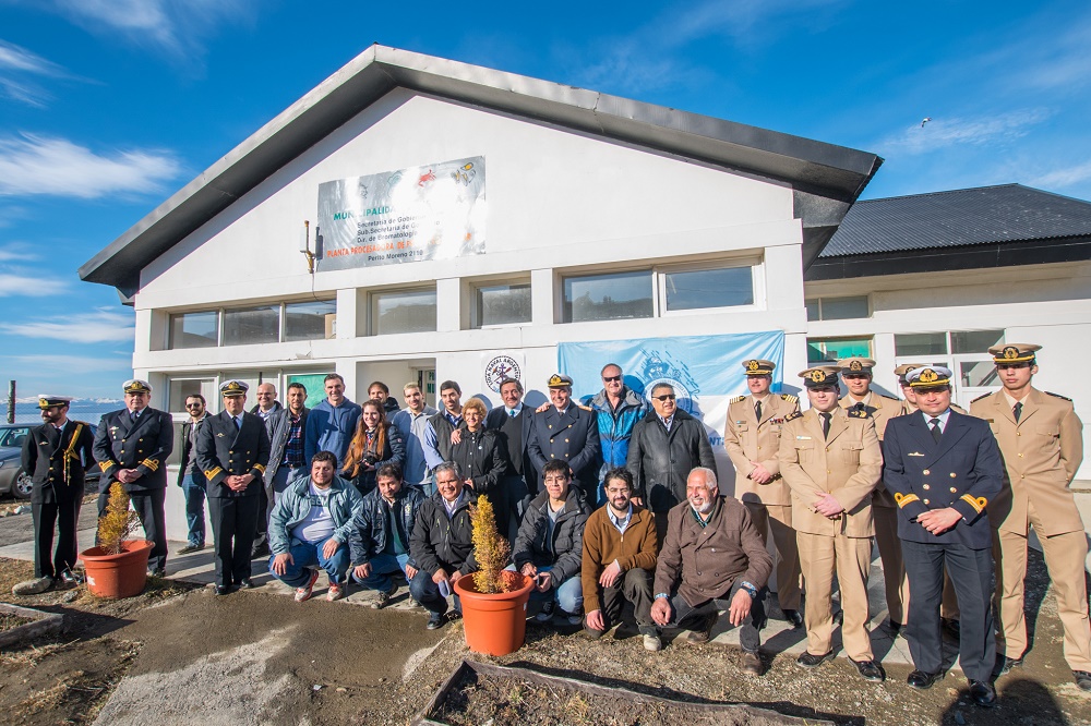 Autoridades del Área Naval Austral, la Prefectura naval Ushuaia, de la Liga Naval Argentina, junto al Secretario de Turismo Municipal, Juan Cherañuk y el Subsecretario de Desarrollo Económico, Lucas Gallo, representantes de la UTN y del gremio del SOMU estuvieron presentes en la Planta Municipal Procesadora de Productos de Mar.