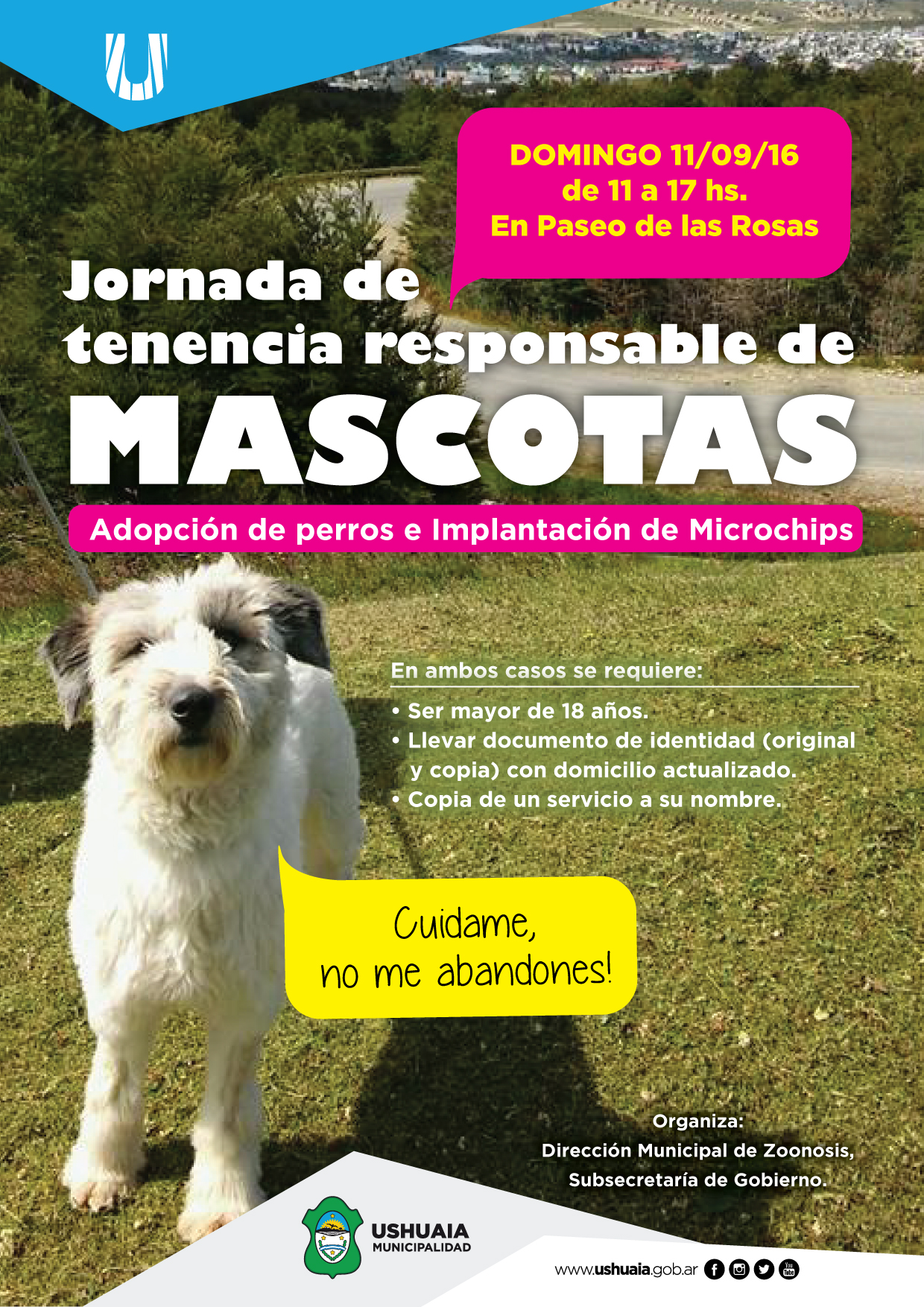 El Departamento de Zoonosis de la Municipalidad de Ushuaia realizará una jornada de tenencia responsable de mascotas. Durante la misma los mayores de 18 años podrán adoptar canes y colocar el microchip a sus mascotas.