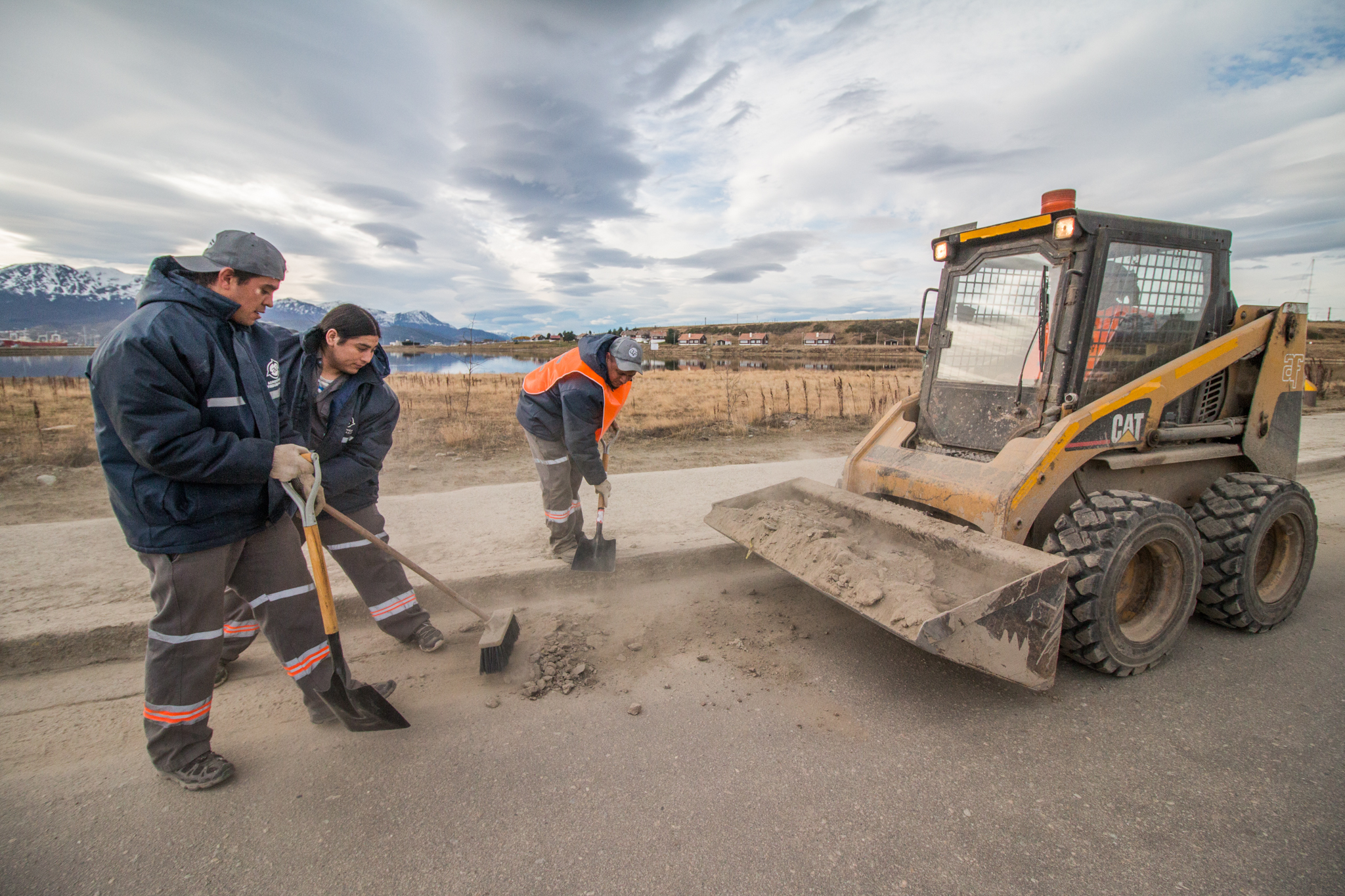 Ushuaia 06/09/16 .-Cuadrillas de trabajadores de Agrotécnica Fueguina iniciaron el barrido y limpieza de la tierra acumulada en los costados de las avenidas Maipú y Prefectura Naval entre Yaganes y Fuegia Basket, trabajo que continuará con el plan que será anunciado en los próximos días, que sumará una importante campaña de información y educación a la comunidad.