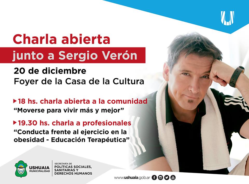 Ushuaia 19/12/16 .- La Municipalidad de Ushuaia invita a la comunidad a participar de la charla abierta del Licenciado Sergio Verón que se llevará a cabo este martes 20, organizada por la Secretaría de Políticas Sociales, Sanitarias y Derechos Humanos.