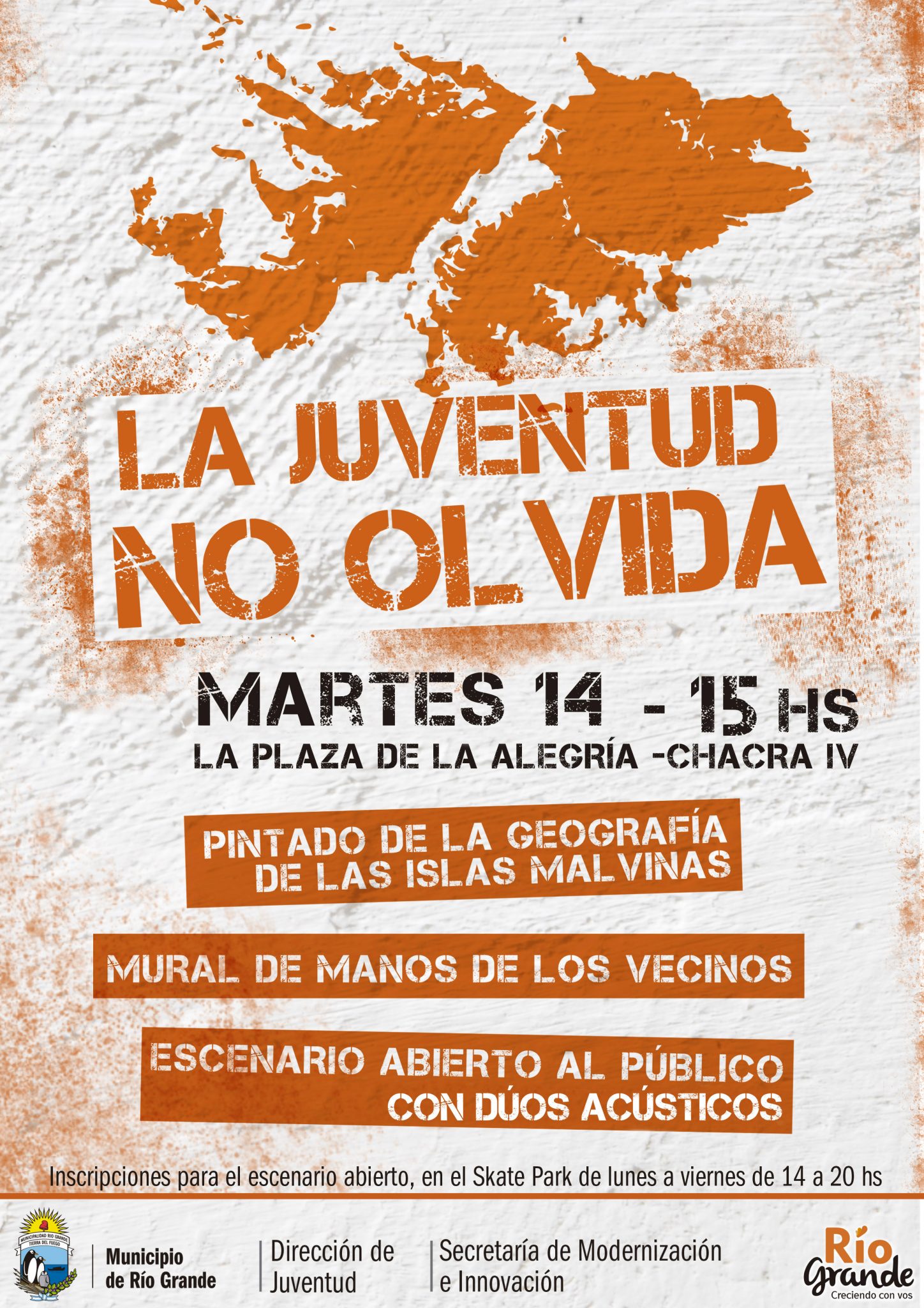 Rio Grande 13/02/17 .-En el marco de las acciones que lleva adelante el Municipio para reforzar y mantener vivo el reclamo de soberanía sobre nuestras Islas Malvinas, este martes a partir de las 15:00hs se realizará en la Plaza de la Alegría de Chacra IV un esténcil de las Islas y un mural de manos con la participación de los vecinos de la zona.