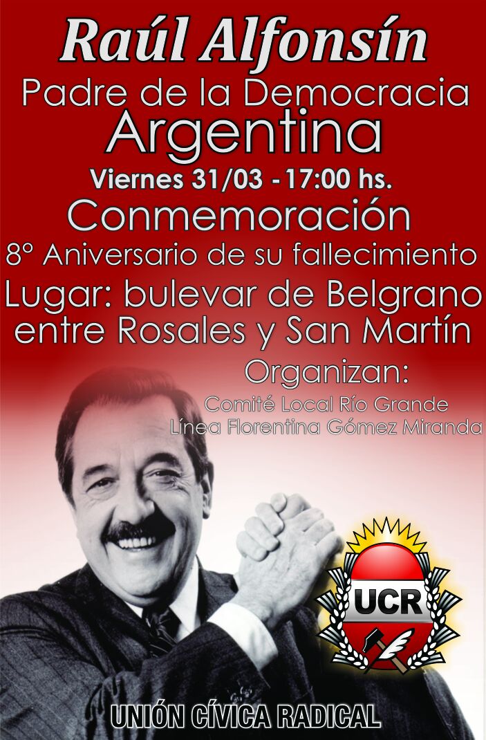 Rio Grande 26/03/17 .- Al cumplirse 8 años de su fallecimiento, el Comité Rio Grande la UCR y la línea Florentina Gómez Miranda, invitan al conmemorativo a llevarse a cabo el viernes 31 de marzo a las 17 hs.