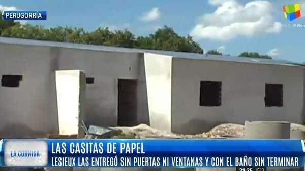 Así lo reveló esta noche un informe del programa La Cornisa, de América TV, titulado «Casitas de papel», justamente porque a varias de las viviendas entregadas este año a sus adjudicatarios les faltaban desde ventanas y puertas hasta cielorrasos. Además, las viviendas fueron entregadas sin cloacas, agua corriente, luz eléctrica ni gas natural.