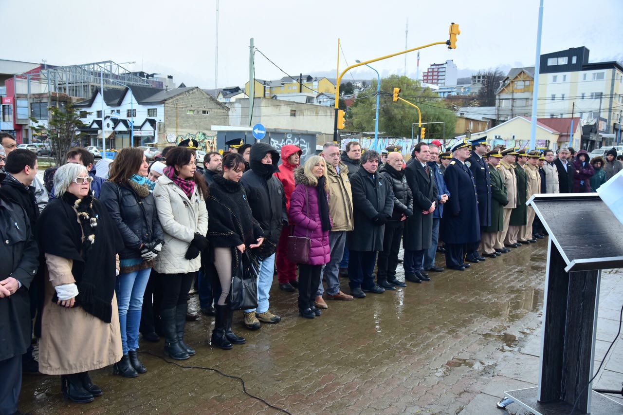 El acto estuvo encabezado por el secretario de Gobierno del Municipio, Omar Becerra, acompañado de la totalidad del gabinete, los concejales Hugo Romero y Tomás Bertotto, el legislador Ricardo Romano, Fuerzas Armadas y de Seguridad, los embajadores de la ciudad de Ushuaia, abanderados de escuelas, representaciones consulares y vecinos.