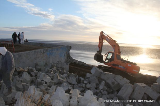 Río Grande.- 02-08-17 Debido al efecto erosionador del mar, un sector del muro costanero de nuestra ciudad fue socavado, razón por la cual el Municipio, a través de la Secretaría de Obras y Servicios Públicos, dispuso la reparación de la zona afectada.