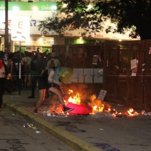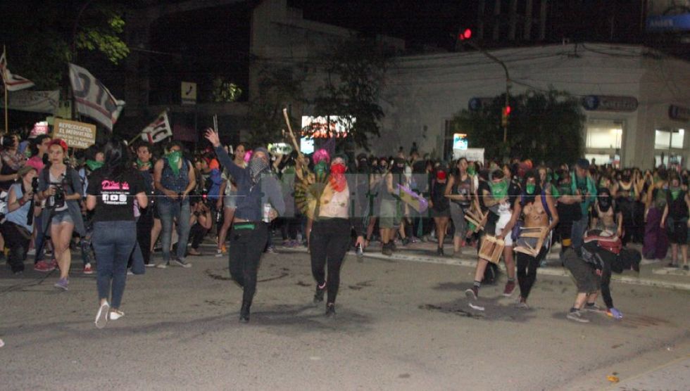 A las 20 horas aproximadamente se llevó a cabo una protesta de un sector reducido que se apartó de la marcha de las mujeres y se dirigió hacia la Catedral, donde realizaron pintadas y prendieron fuego que fue sofocado minutos más tarde por Bomberos.