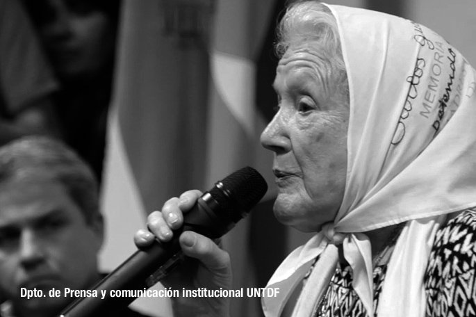 Ushuaia, 26 de octubre de 2017. El Consejo Superior de la Universidad Nacional de Tierra del Fuego (UNTDF) aprobó, por unanimidad, la designación de la madre de Plaza (Mayo Línea Fundadora) Nora Cortiñas como Profesora Honoraria de la UNTDF, en el marco de una iniciativa presentada por el Programa “Cátedra Libre de Derechos Humanos” durante la última sesión ordinaria del pasado viernes.