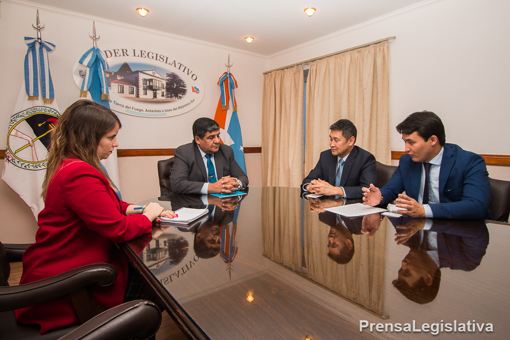 Ushuaia, miércoles 16 de mayo de 2018.- El vicegobernador Juan Carlos Arcando se reunió en sede de Presidencia de la Cámara Legislativa con el embajador de Kazajstán en Brasil, Kairat Sarzhanov, autoridad concurrente ante la República Argentina. Acompañó al Vicegobernador en la reunión la subsecretaria de relaciones internacionales, Cecilia Fiocchi.