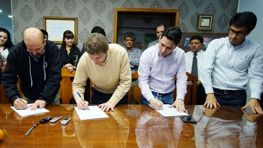 En la mañana de hoy y luego de meses de tratativas, se firmó el acuerdo salarial entre el Municipio de Rio Grande y ATE que incluye un aumento del 15 %, 100 % de aumento en asignaciones familiares, mejores condiciones laborales y una clausula gatillo que automáticamente aumentará el salario según aumente la inflación.