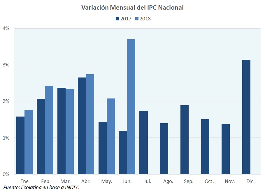 · Si bien julio viene siendo más calmo en materia cambiaria, estimamos que el traslado a precios de la devaluación continuará sintiéndose durante este mes, máxime considerando los ajustes ya realizados en combustibles. Además, la inflación también estará motorizada por factores estacionales (vacaciones de invierno en julio). Por ende, según nuestras proyecciones, la suba de precios rondaría el 2,5-3% en el séptimo mes del año (si no se registran nuevos saltos cambiarios). De este modo, alcanzaremos seis meses consecutivos (febrero-julio) con una inflación mensual superior al 2%, algo que no sucedía desde la primera mitad del 2016.