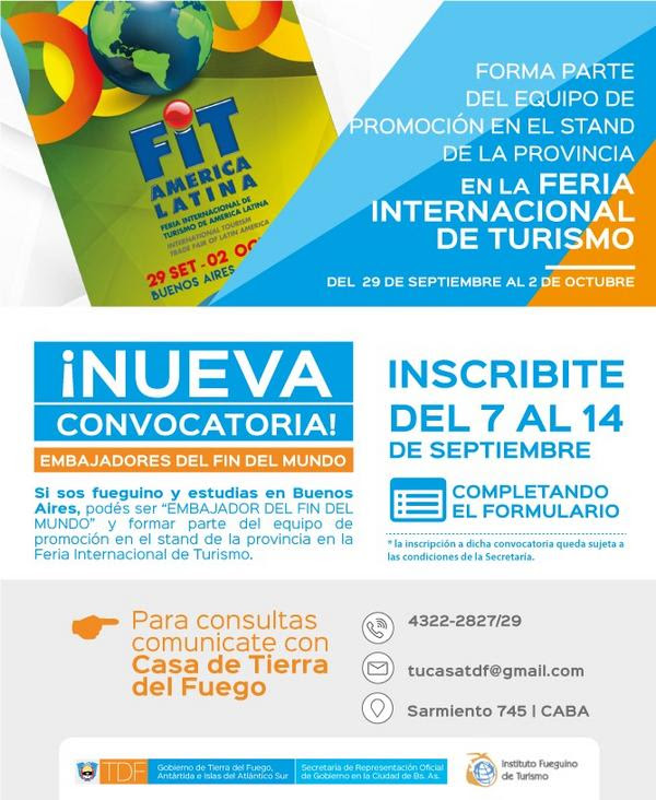ABRE LA INSCRIPCIÓN PARA PROGRAMA DE EMBAJADORES FUEGUINOS EN LA FERIA INTERNACIONAL DEL TURISMO