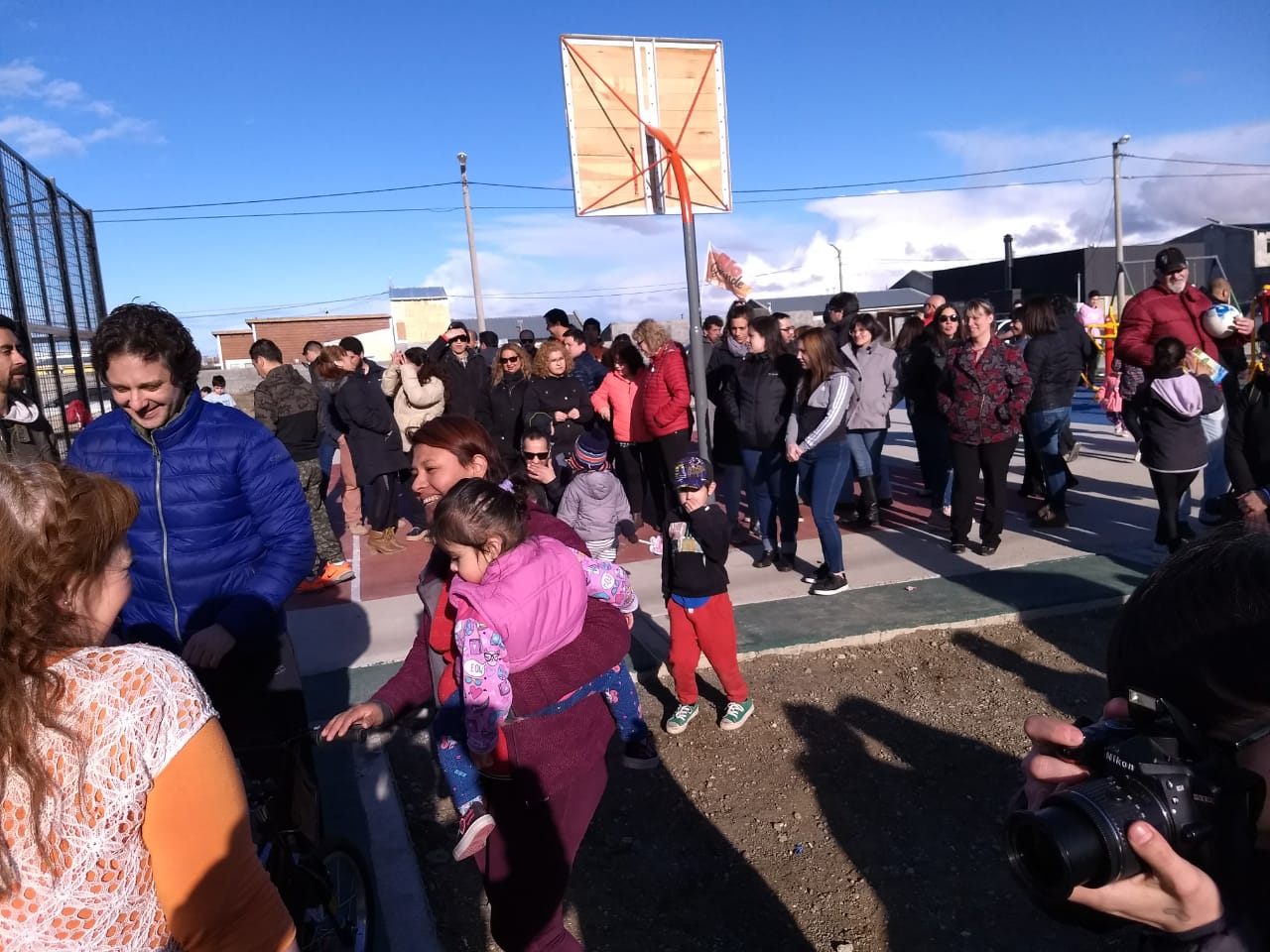 Viern.- 21-09-2018.- Como se había anunciado, este jueves por la tarde se llevó a cabo la inauguración de un nuevo espacio deportivo en el barrio Policial. Durante el evento, se sortearon bicicletas y juguetes y, además, se compartió una merienda con los chicos del barrio.
