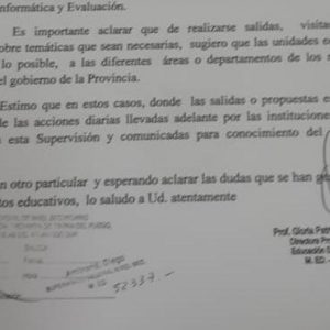 Tanto esta nota, como la que estableció la prohibición general, fueron celosamente guardadas por los laderos de Bertone, que no querían su difusión. “Había mucho hermetismo y temor entre los docentes. Pero ahora que el gobierno provincial comenzó a despedir personal administrativo, puede más la bronca que la paralización”, le contó un docente a Minuto de Cierre.