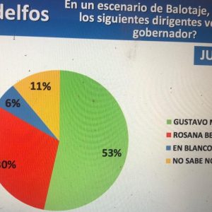 En julio de 2018, un monitoreo de opinión pública -realizado entre el 13 y el 18 de ese mes- reveló que el 41% de los consultados votaría a Gustavo Melella para que sea el próximo gobernador, mientras que sólo el 18,3% lo haría por Rosaba Bertone. A su vez, en un escenario de balotaje, el intendente de Río Grande le ganaría tanto a la gobernadora kirchnerista (53% a 30%), como al hombre de Cambiemos Héctor “Tito” Stefani, que probablemente termine siendo compañero de fórmula de Melella.