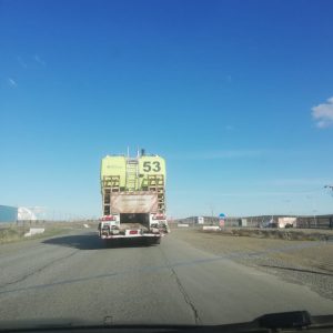 El gigantesto vehiculo llegó transportado en un carromato especial debido a que por sus dimensiones no puede transitar por rutas o caminos habilitados.