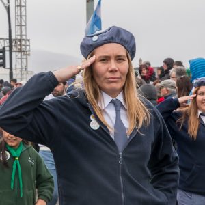 Posteriormente, las autoridades se trasladaron al palco oficial, donde el intendente municipal, Walter Vuoto realizó el discurso tradicional, dirigido los vecinos de la ciudad. De inmediato dieron puntapié inicial al desfile cívico militar, los Embajadores de Ushuaia, Yanina Ariza y Matías Núñez Olivera. Cabe destacar, que Ushuaia contó con la presencia especial de la última pobladora Yagán de Puerto Williams (Chile), “la abuela Cristina Calderón”. Participación del tradicional desfile, instituciones educativas, sociales, ONGs, deportivas, culturales, intermedias. Promediando las 15, fue el turno de los efectivos militares de todas las fuerzas de seguridad con asiento en Ushuaia.