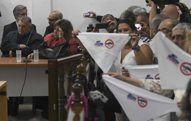 Una vez leído el fallo, las víctimas y sus allegados que asistieron a la audiencia estallaron en aplausos. Varios portaban pañuelos blancos que llevaban inscritos el logo de Ford y las palabras “Nunca más”, así como un dibujo del modelo Ford Falcon con el que la empresa abasteció al Estado en los años 70 y que era usado por los militares para los operativos de secuestro de disidentes.